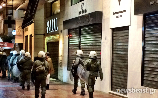 Την πορεία ακολούθησαν δυνάμεις των ΜΑΤ, δίχως, ωστόσο, να παρέμβουν σε οποιοδήποτε σημείο.