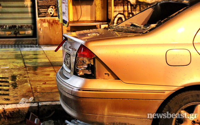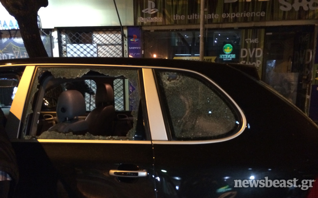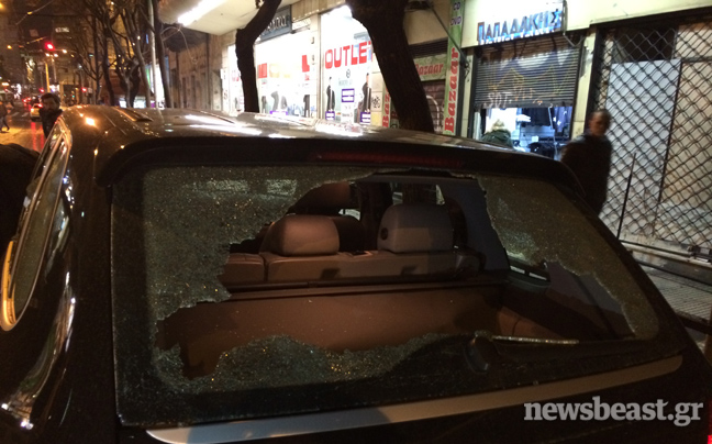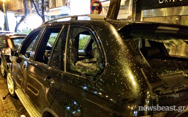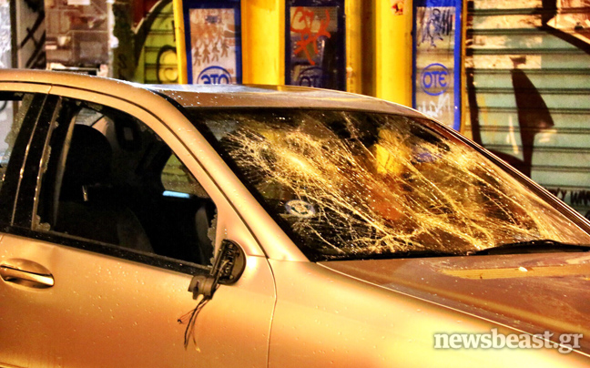 Παράλληλα, διαδηλωτές προκάλεσαν φθορές σε δύο αυτοκίνητα, το ένα εν κινήσει και το άλλο σταθμευμένο.