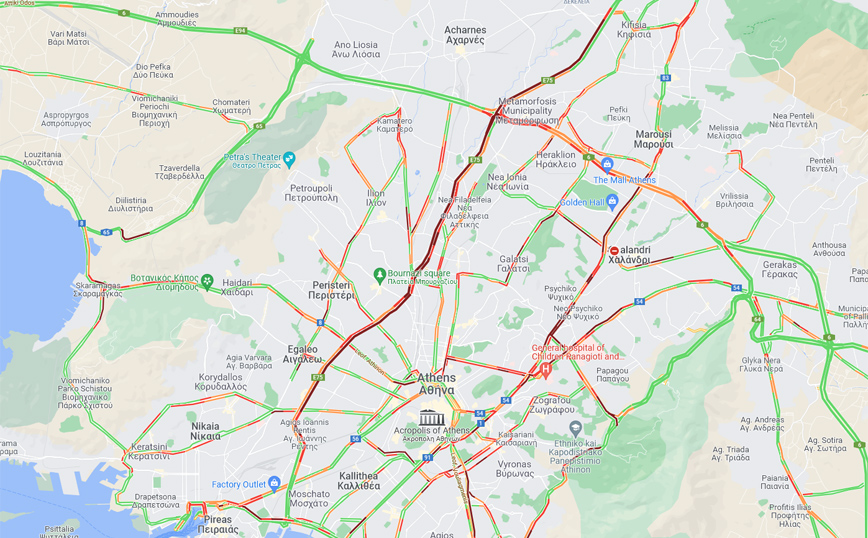 Κίνηση τώρα: Δείτε τον χάρτη της Google με την κίνηση στους δρόμους της Αθήνας