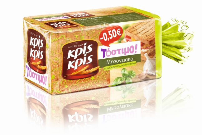To Κρις Κρις «Τόστιμο!» Μεσογειακό, με Σκόρδο και Βασιλικό είναι ένα σταρένιο, αφράτο ψωμί τοστ με ελαιόλαδο, που θα κατακτήσει τους καταναλωτές.