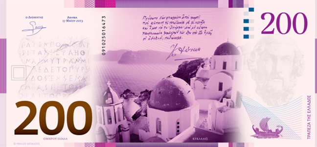 Στην προσωπική του ιστοσελίδα μπορεί να δει κανείς όλα τα χαρτονομίσματα που σχεδίασε ο κ. Βατικιώτης.