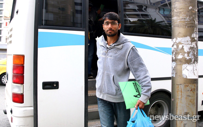 Γύρω στις 15:00 το μεσημέρι της Πέμπτης, το λεωφορείο με 40-50 μετανάστες ξεκίνησε από το κέντρο κράτησης στην Αμυγδαλέζα. Μία ώρα αργότερα, έφτανε συνοδεία περιπολικού της ΕΛ.ΑΣ. στην πλατεία Ομονοίας, αποβιβάζοντας περίπου 20 μετανάστες. Οι άλλοι μισοί είχαν επιλέξει να κατέβουν σε άλλο σημείο της διαδρομής.