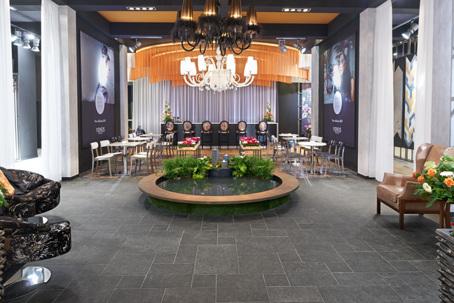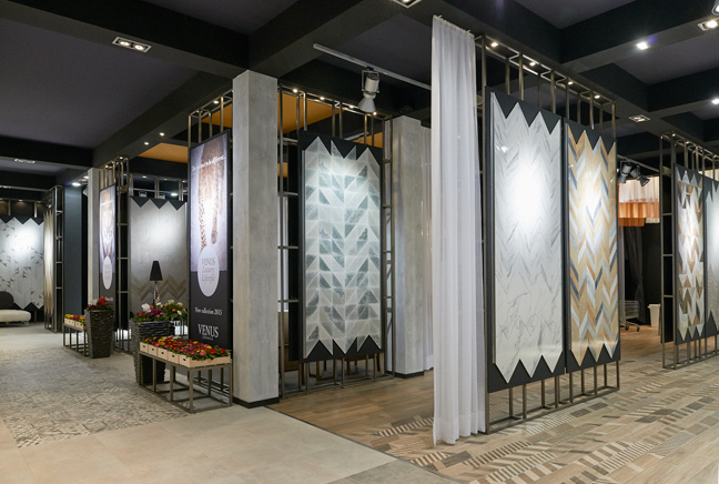 Στο πολυτελές stand της Venus Ceramica αναδείχθηκαν οι πρωτότυπες ιδέες, τα νέα υλικά και οι ιδιαίτεροι χρωματισμοί τους. Πρωτοποριακή διακοσμητική πρόταση της Venus για το 2015 αποτελεί το Chevron που έκλεψε τις εντυπώσεις με τη μοναδικότητά και τους διαφορετικούς τρόπους εφαρμογής του. Ιδανικό για επενδύσεις τοίχου και δαπέδου, προσφέρει πολλές δυνατότητες, χαρίζοντας ιδιαίτερο στυλ σε κάθε χώρο.