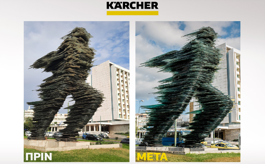 H εταιρεία συστημάτων καθαρισμού Kärcher Greece, σε συνεργασία με το Δήμο Αθηναίων, ανέλαβε για μία ακόμη χρονιά τον καθαρισμό του γλυπτού «Δρομέα», που στολίζει ένα από τα πιο κομβικά σημεία της Αθήνας από το 1988 μέχρι και σήμερα.