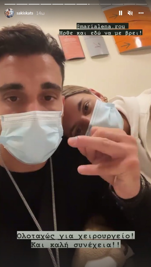 Στο πλευρό του η Μαριαλένα Ρουμελιώτη. «Ήρθε και εδώ να με βρει» έγραψε στο Insta story του. «Ολοταχώς για χειρουργείο και καλή συνέχεια» λέει ο Σάκης Κατσούλης.