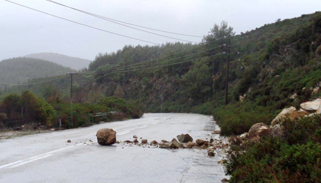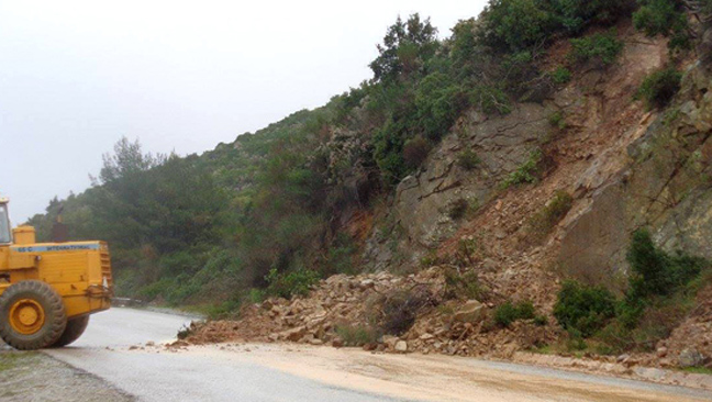 Από την Τορώνη μέχρι τη Συκιά και τη Σάρτη υπερχείλισαν ρέματα, πλημμύρισαν σπίτια και έγιναν πολλές κατολισθήσεις στο επαρχιακό οδικό δίκτυο.