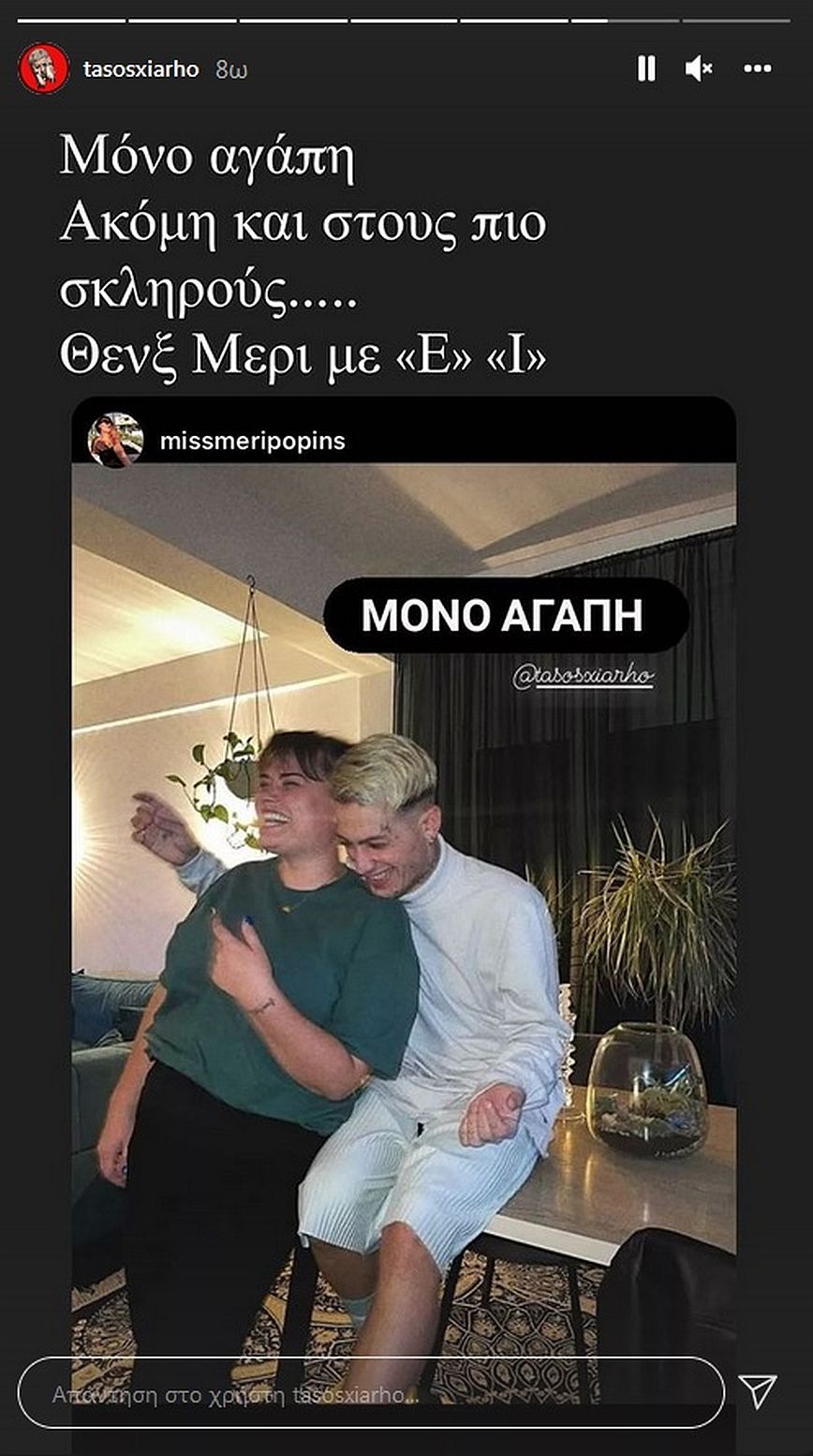 Ο Τάσος Ξιαρχό, στη δική του φωτογραφία, έγραψε: «Μόνο αγάπη και στους πιο σκληρούς. Θενξ Μέρι με “Ε” “Ι”.