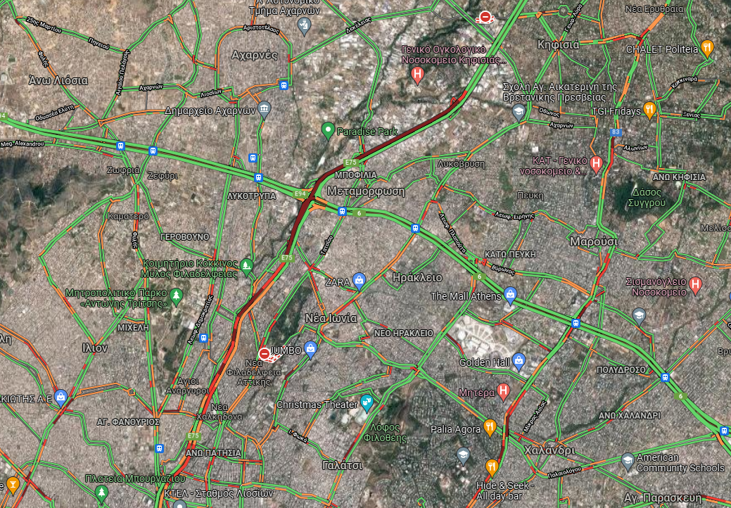 Αποτέλεσμα ήταν η κυκλοφορία να διακοπεί στις 3 λωρίδες και να σχηματιστεί τεράστιο μποτιλιάρισμα. Μέχρι τώρα η κίνηση είναι στο κόκκινο από το ύψος της Λυκόβρυσης μέχρι και το Περιστέρι.