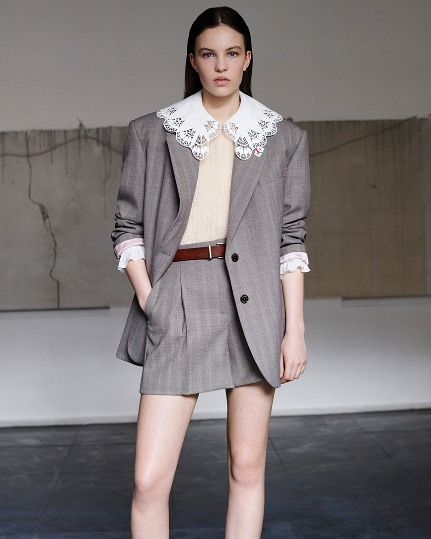 Για εκείνη, η κομψότητα αποτελεί μια μορφή επανάστασης. Είναι λάτρης του παραδοσιακού βρετανικού στυλ, αγαπά τα tweeds, το μαλλί, το κοτλέ, τα πλεκτά πουλόβερ και τα μοτίβα με ρόμβους. Εκτιμά ό,τι είναι φτιαγμένο με μαεστρία, τα όμορφα υλικά, τα κομψά τελειώματα και τις ραφές. Η συλλογή από κασμίρ αποπνέει μια ανδρόγυνη γοητεία, ενώ απολαμβάνει περισσότερο από οτιδήποτε να συνδυάζει λευκά top με λεπτομέρειες από δαντέλα ή γιακάδες με πιέτες. Το διαχρονικό κόψιμο που διέπει τα μακριά της φορέμάτα δεν πρόκειται να φύγει ποτέ από τη μόδα. Φοράει απλά πουκάμισα, με ρίγες ή σχέδια και κασκόλ που θα μπορούσε να της το είχε δωρίσει η γιαγιά της. Ωστόσο, η ευπρέπεια της συναντά τον αντισυμβατισμό, αφού η γυναίκα Sandro προτιμά να φορά, μασίφ μπότες μέχρι και δερμάτινα loafers.