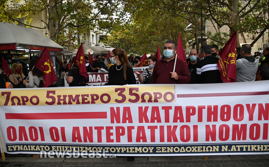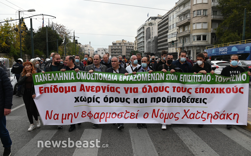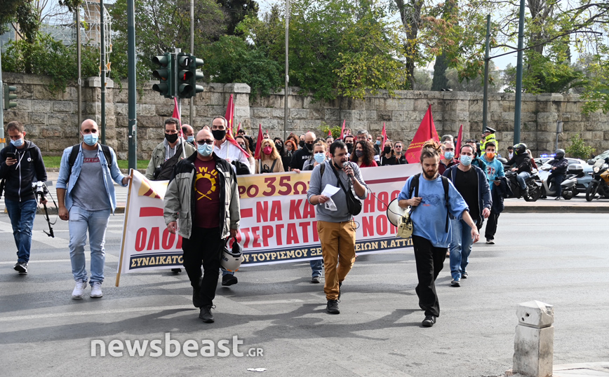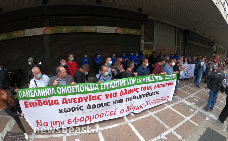 Πανελλαδική απεργία πραγματοποιούν σήμερα, Τρίτη (9/11) οι εργαζόμενοι στον τουρισμό και τον επισιτισμό οι οποίοι έδωσαν ραντεβού στις 12:00 στην Διονυσίου Αρεοπαγίτου και στη συνέχεια ξεκίνησαν πορεία με τελικό σταθμό το υπουργείο Εργασίας ενώ πρώτα πέρασαν από το υπουργείο Τουρισμού όπου και άφησαν φυλλάδια.