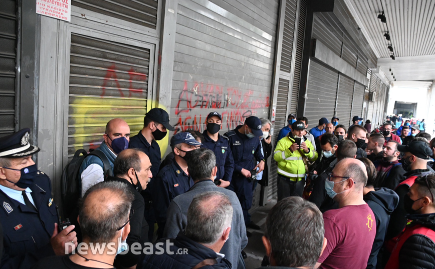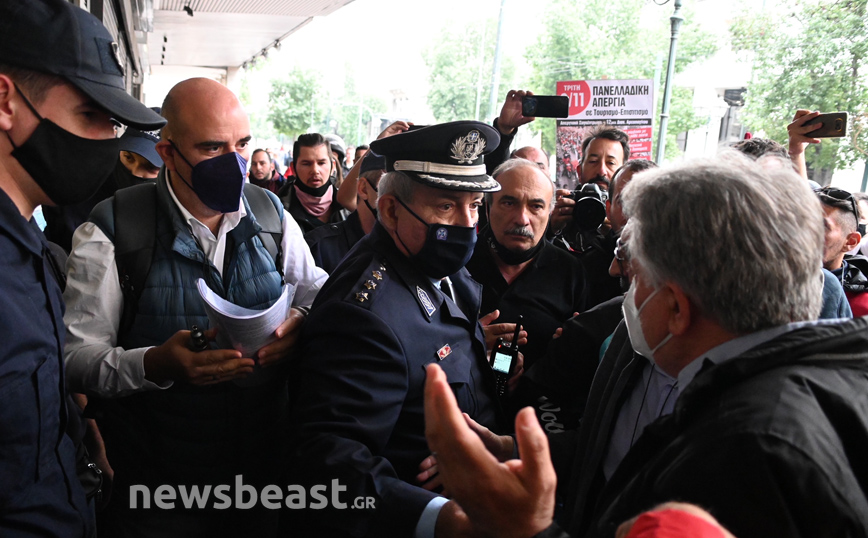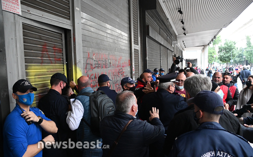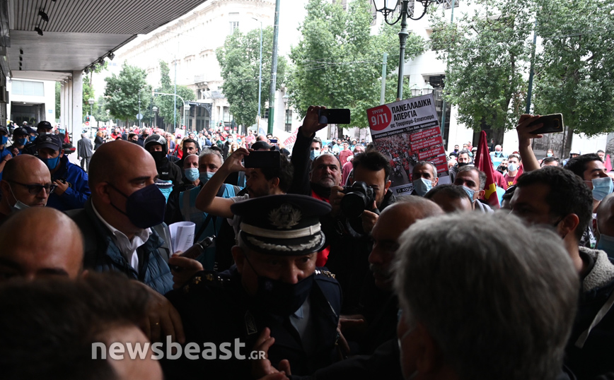 Τελικά λίγο λεπτά αργότερα η επταμελής αντιπροσωπεία μπήκε στο κτίριο ώστε να υποβάλει τα αιτήματά της στο στέλεχος του υπουργείου Εργασίας.