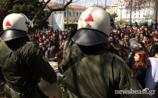 Γύρω από το κτίριο της Νομικής Σχολής Αθηνών, το οποίο είναι υπό κατάληψη από την περασμένη Παρασκευή, έχουν τοποθετηθεί δυνάμεις των ΜΑΤ.