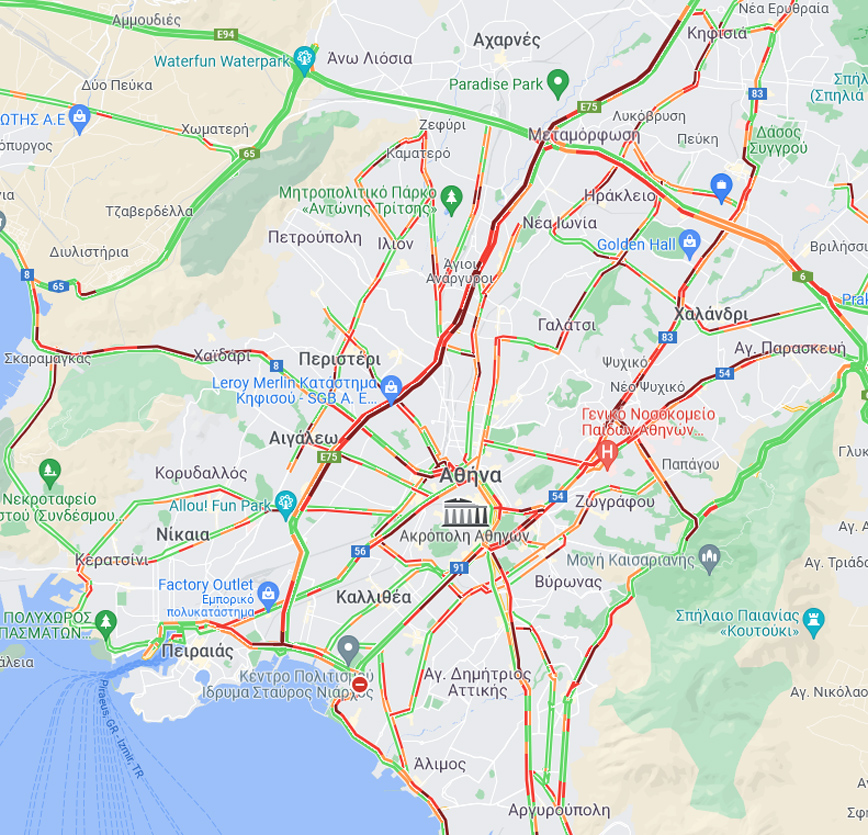 Ο χάρτης με την κίνηση τώρα στους δρόμους