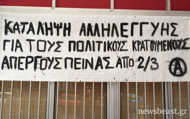 Οι αντεξουσιαστές μπήκαν στο στούντιο του σταθμού και μετέδωσαν ηχογραφημένο μήνυμα αλληλεγγύης στους απεργούς πείνας που ζητούν την κατάργηση αντιτρομοκρατικών νόμων και την αποφυλάκιση του Σάββα Ξηρού.