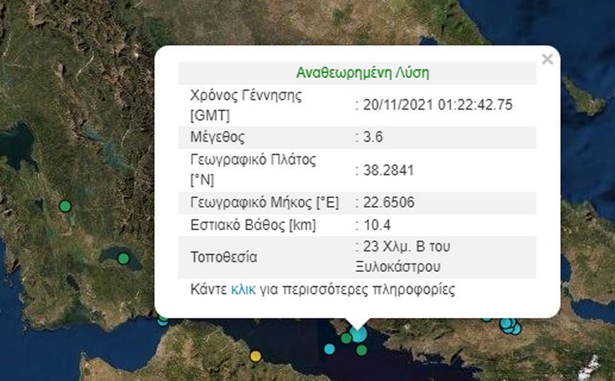 Το επίκεντρο της δόνησης εντοπίστηκε 23χλμ. βόρεια του Ξυλοκάστρου, με το εστιακό της βάθος να υπολογίζεται στα 10,4 χλμ.