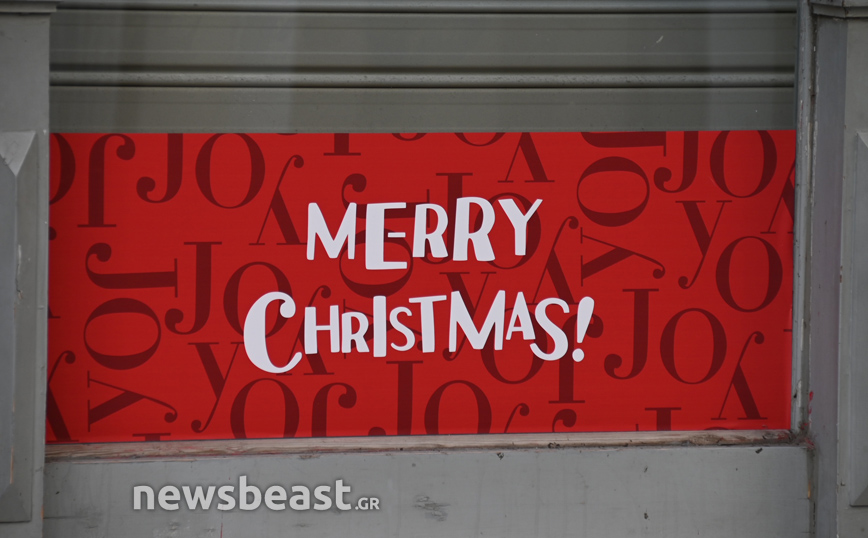 Μέσα σε είκοσι μόλις μέτρα ο περαστικός μπορεί να δει στις βιτρίνες αυτοκόλλητα μπάνερ που διαφημίζουν εκπτώσεις, προσφορές, Black Friday, αλλά και ευχές για καλά Χριστούγεννα και καλές γιορτές.