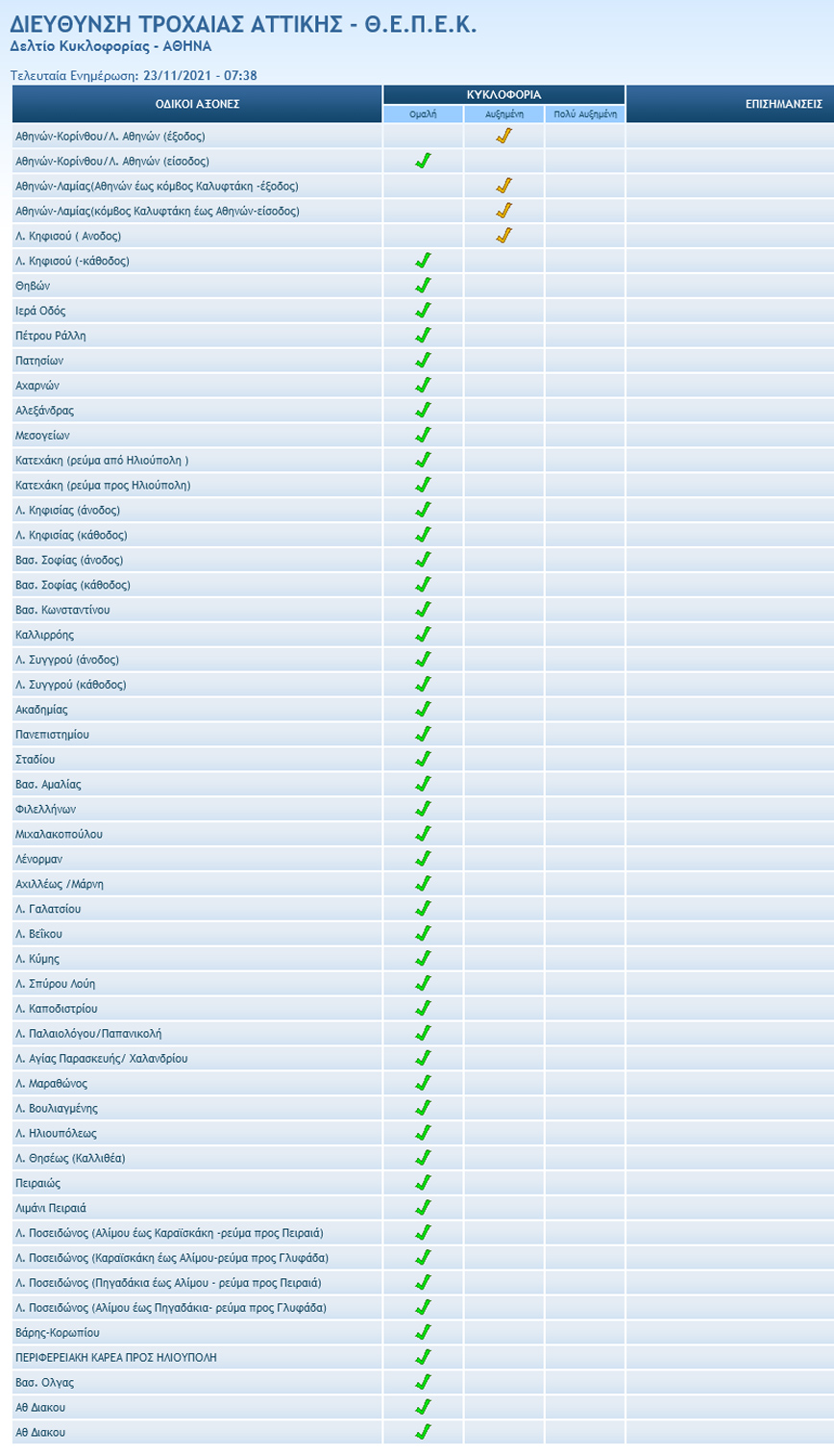 Αναλυτικά η κίνηση στους δρόμους της Αθήνας από το δελτίο κυκλοφορίας της αστυνομίας