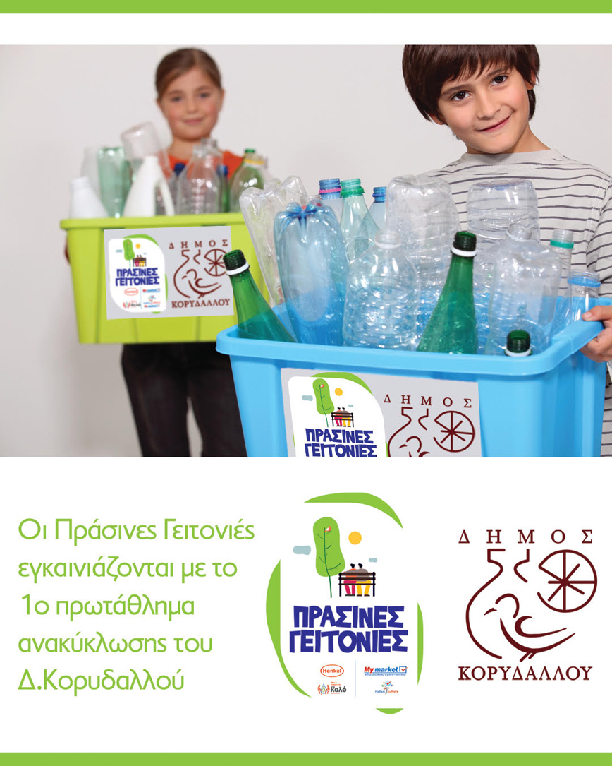 Η φετινή σχολική χρονιά ξεκινάει με το 1ο Σχολικό Πρωτάθλημα Ανακύκλωσης για τους μαθητές Πρωτοβάθμιας Εκπαίδευσης του Δήμου Κορυδαλλού! Στο πλαίσιο της πρωτοβουλίας «Πράσινες Γειτονιές», που υλοποιείται από τον τομέα Απορρυπαντικών και Προϊόντων Οικιακής Φροντίδας της Henkel Hellasσε αποκλειστική συνεργασία με τα My market, ο Δήμος Κορυδαλλού εγκαινιάζει ένα πρωτοποριακό εκπαιδευτικό πρόγραμμα ανακύκλωσης στα 15 Δημοτικά σχολεία του!