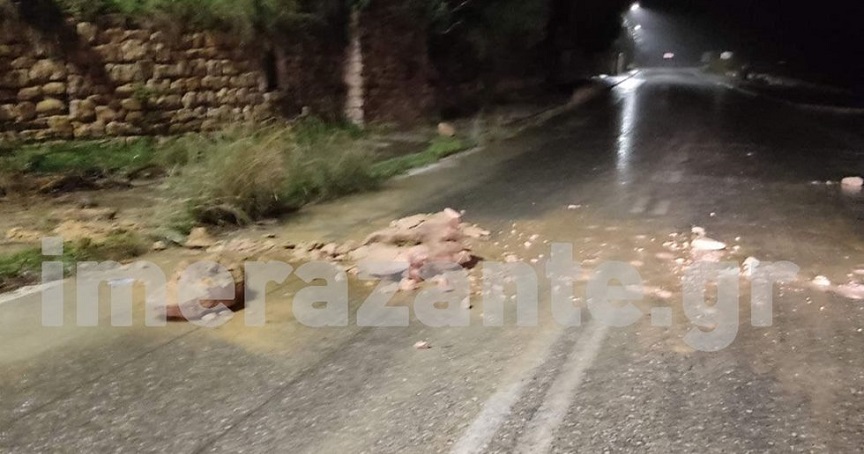 Σύμφωνα με τα όσα αναφέρει η ιστοσελίδα imerazante.gr στο σημείο επιχειρούν μηχανήματα για να αφαιρεθούν τα χώματα και οι βράχοι από το οδόστρωμα.