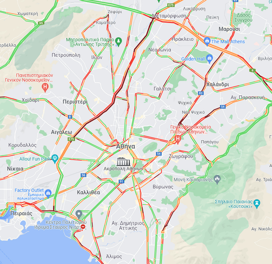 Κίνηση τώρα: Δείτε τον χάρτη της Google με την κίνηση στους δρόμους της Αθήνας