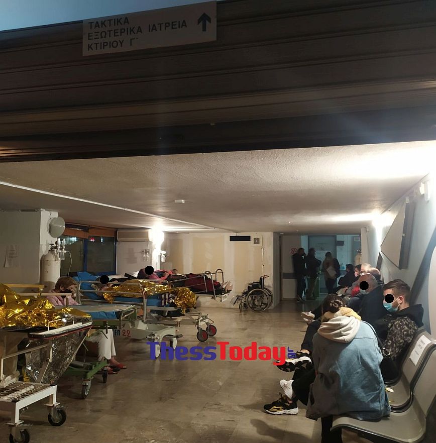 Συνθήκες πολέμου θύμιζε η εφημερία στο Ιπποκράτειο της Θεσσαλονίκης, με τους ασθενείς να περιμένουν έως και 8 ώρες για να βρουν κρεβάτι.