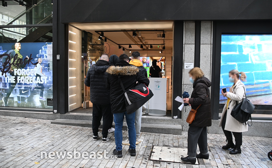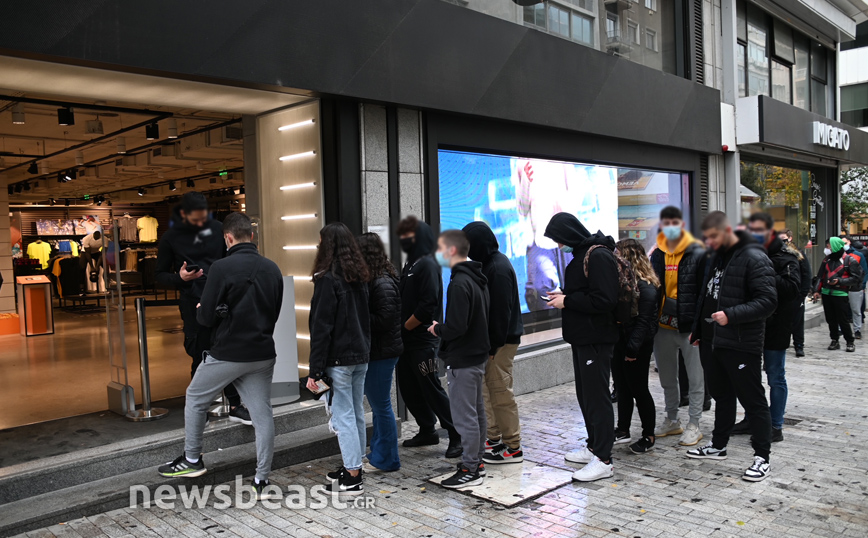 Όπως αποδεικνύουν οι εικόνες που κατέγραψε ο φωτογραφικός φακός του Newsbeast περισσότερος κόσμος έχει συγκεντρωθεί έξω από καταστήματα με αθλητικά είδη αλλά και έξω από μεγάλες αλυσίδες καταστημάτων ένδυσης.