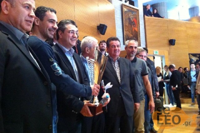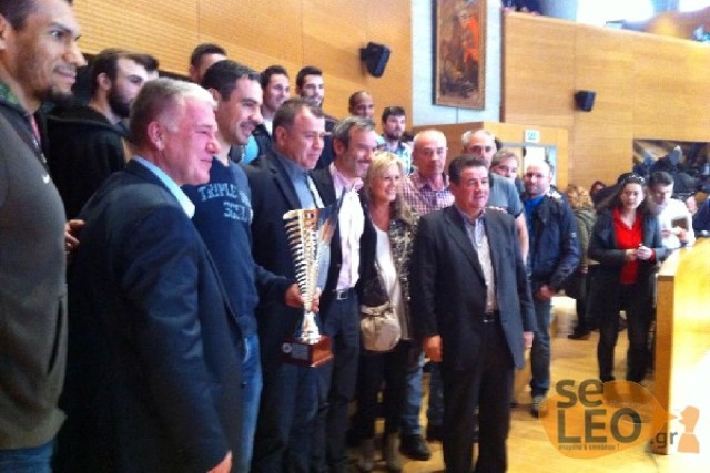 Ο δήμαρχος, Γιάννης Μπουτάρης, απένειμε στους βολεϊμπολίστες τιμητικά διπλώματα, ενώ αυτοί του χάρισαν μια φανέλα και μια μπάλα με τις υπογραφές τους.