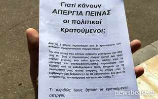 Σε μία ακόμα κίνηση αλληλεγγύης στους φυλακισμένους απεργούς πείνας προχώρησε μια μικρή ομάδα ατόμων σήμερα το πρωί, μια μέρα μετά την εισβολή στη Βουλή που προκάλεσε έντονη πολιτική αντιπαράθεση.