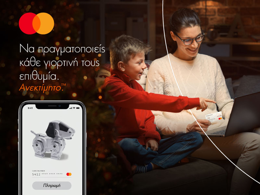 Ένα είναι πάντως σίγουρο: Φέτος οι αγορές θα γίνουν ηλεκτρονικά και θα σας γλιτώσουν από τη βαβούρα και το συνωστισμό στα φυσικά καταστήματα, ενώ με τη βοήθεια της πιστωτικής ή χρεωστικής κάρτας Mastercard®, οι αγορές σας θα γίνουν ακόμα πιο εύκολα, γρήγορα και με ασφάλεια. Φέτος μάλιστα, πραγματοποιήστε τις αγορές σας online σε ελληνικά ηλεκτρονικά καταστήματα με τη Mastercard κάρτα σας και για κάθε 10 συναλλαγές, συνολικής αξίας 500€ και άνω, κερδίζετε 50€!