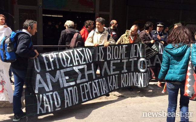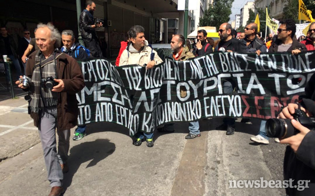 Στην οδό Σταδίου και το υπουργείο Εργασίας έφτασε η πορεία περίπου 400 ατόμων που ξεκίνησε από τα Προπύλαια.