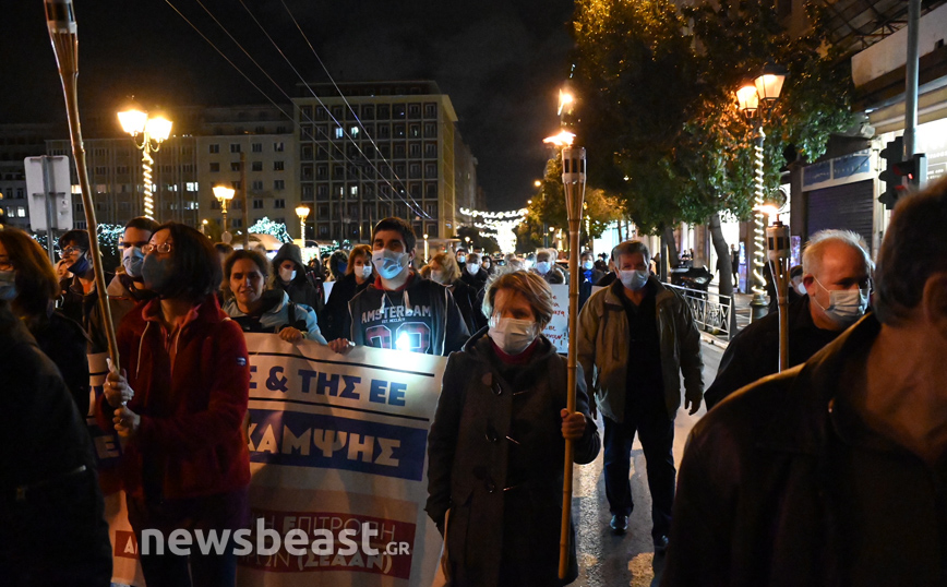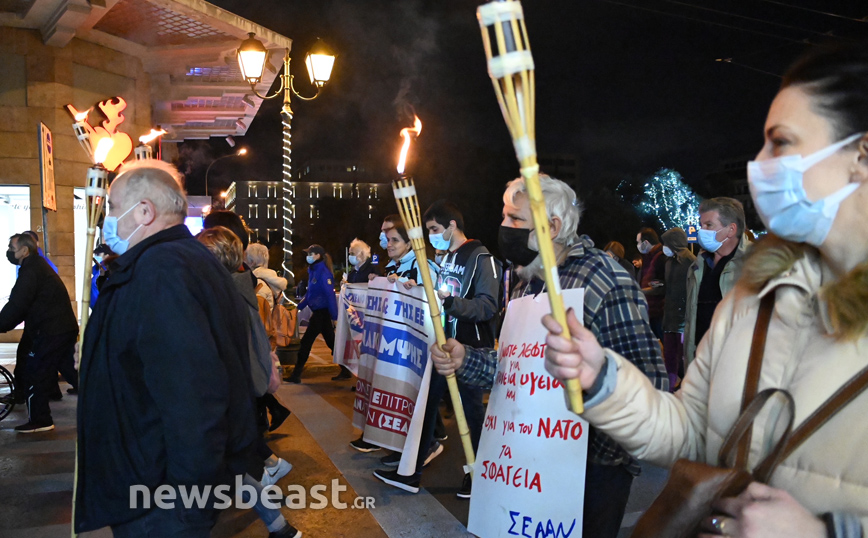 Λίγο μετά τις 19.30 οι συγκεντρωμένοι ξεκίνησαν πορεία προς τη Βουλή, όπου έφτασαν λίγο πριν τις 20:00.