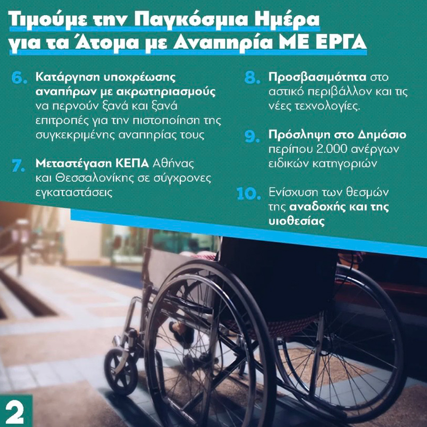 Συνεχίζουμε σε όλα τα επίπεδα, στοχεύοντας στη βελτίωση της καθημερινότητας των συμπολιτών μας με αναπηρία.»
