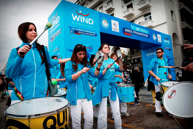 Όλους τους δρομείς υποδέχθηκαν δεκάδες Θεσσαλονικείς που έκαναν κερκίδες τα πεζοδρόμια και τις πλατείες της πόλης για να χειροκροτήσουν την προσπάθειά των συμμετεχόντων. Μαζί τους, η ομάδα των QUILOMBO, ντυμένοι στα χρώματα της WIND, έδιναν ρυθμό και ξεσήκωναν συμμετέχοντες και θεατές με τα τύμπανα τους.