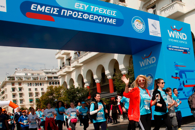 Δρομείς κάθε ηλικίας, έμπειροι αθλητές και μικρά παιδιά πλημμύρισαν τη συμπρωτεύουσα που ταυτόχρονα ανταποκρίθηκαν στο κάλεσμα της WIND, ως επίσημου χορηγού της διοργάνωσης και ονομαστικού χορηγού των 5χλμ και 10χλμ., στηρίζοντας με το πέρασμα τους κάτω από την Αψίδα Αγάπης την ενίσχυση του έργου του Χαμόγελου του Παιδιού και του Συλλόγου Συνδρόμου Down Ελλάδος.