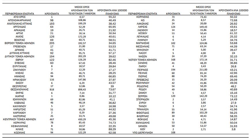Αναλυτικότερα τα κρούσματα στις περιφερειακές ενότητες που ανήκουν στην Αττική: