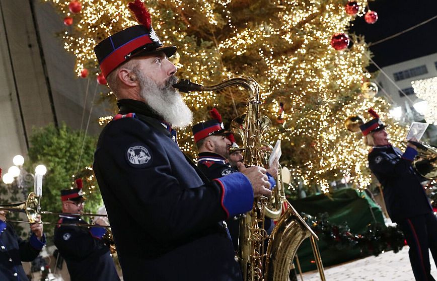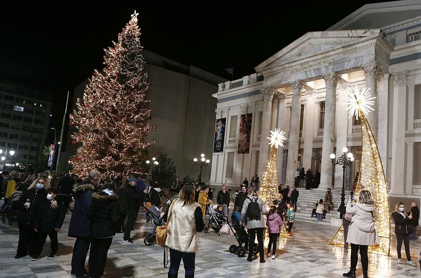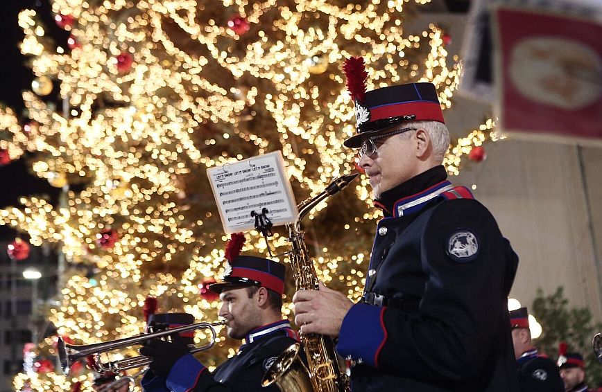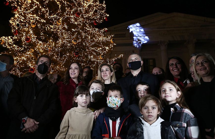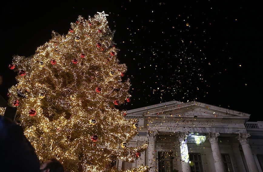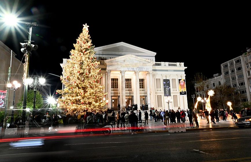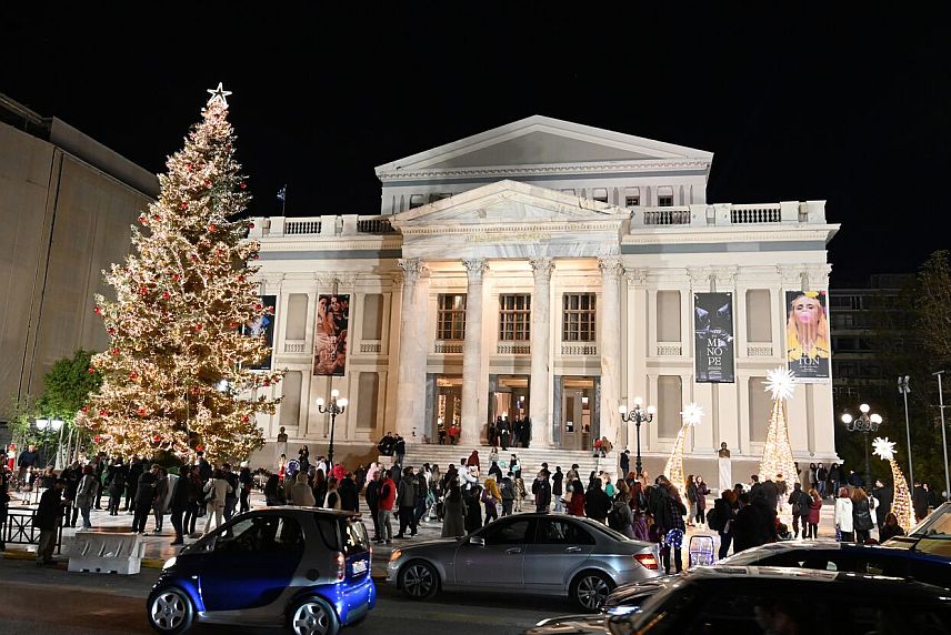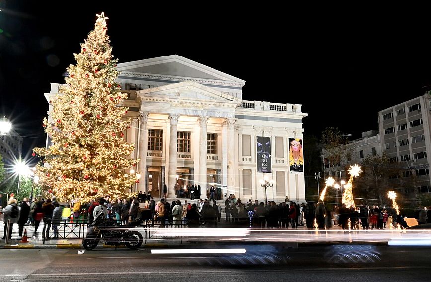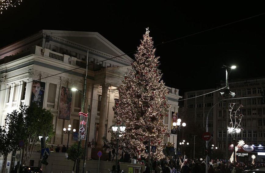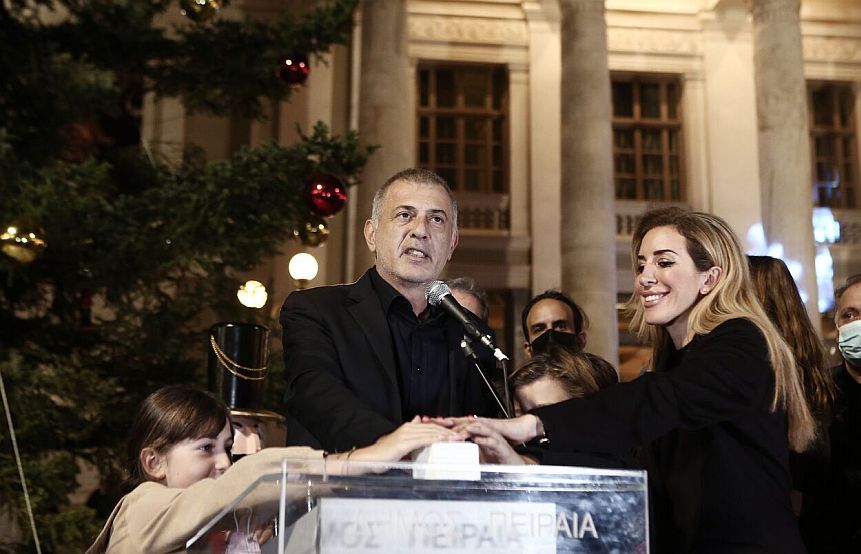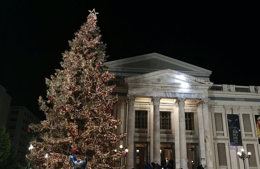 Φωταγωγήθηκε το βράδυ της Κυριακής το χριστουγεννιάτικο δέντρο στον Πειραιά, στον προαύλιο χώρο του Δημοτικού Θεάτρου.