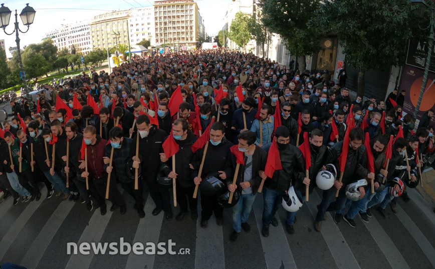 Κλειστή είναι αυτή την ώρα η Σταδίου και οι δρόμοι γύρω από την πλατεία Συντάγματος, ενώ η πορεία κατευθύνεται προς τη Βουλή.