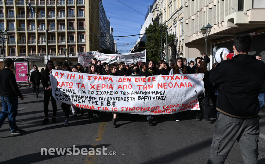 «Αυτή η σφαίρα δεν έπεσε τυχαία, κάτω τα χέρια από τη νεολαία» αναγράφεται σε ένα πανό που κρατούν οι διαδηλωτές στο κέντρο της Αθήνας στην πορεία για τα 13 χρόνια από τη δολοφονία του Αλέξη Γρηγορόπουλου το βράδυ της 6ης Δεκεμβρίου 2008, από τα πυρά του 37χρονου ειδικού φρουρού της ΕΛ.ΑΣ. Επαμεινώνδα Κορκονέα στα Εξάρχεια.