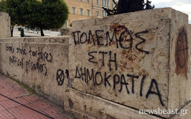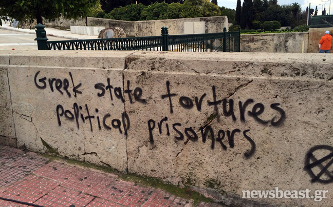 Οι αντιεξουσιαστές στα συνθήματα με τα οποία βεβήλωσαν το Κοινοβούλιο τάσσονταν για μία ακόμη φορά υπέρ της κατάργησης των φυλακών υψίστης ασφαλείας, ενώ πολλά από αυτά καταφέρονταν κατά του πολιτεύματος.