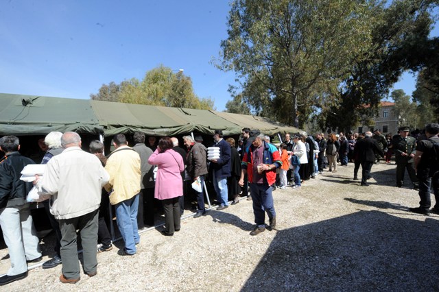 Γεύμα αλληλεγγύης προς τους συνανθρώπους μας που έχουν πληγεί από την οικονομική κρίση προσέφερε το υπουργείο Εθνικής Άμυνας και οι Ένοπλες Δυνάμεις στο Άλσος του Ελληνικού Στρατού στου Γουδή.