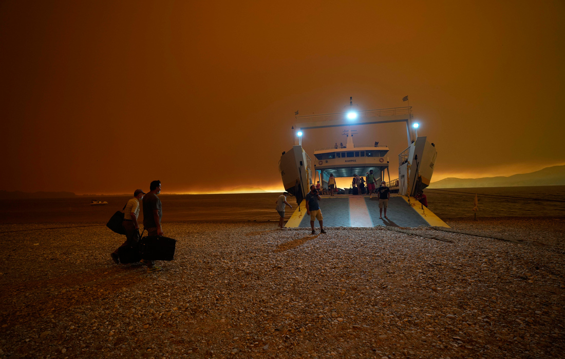 Τη φωτογραφία που επιλέχθηκε στη λίστα με τις καλύτερες για το 2021 από το Associated Press: Tραβήχτηκε τη δεύτερη μέρα που είχαν ξεκινήσει οι φωτιές στην Εύβοια. Το πρώτο που μου έκανε εντύπωση όταν έφτασα, ήταν ο πορτοκαλί καπνός, σα να έβλεπες ένα ηφαίστειο που είχε αρχίσει να ξεχύνεται η λάβα του. Από ένα σημείο και έπειτα άρχισε να επικρατεί στο σκηνικό αυτό το πορτοκαλί. Ήταν σαν μια εικόνα Αποκάλυψης. Μόλις έπεφτε ο ήλιος, αυτό γινόταν ακόμα πιο έντονο. Και ενώ είχα καλύψει τις μεγάλες φωτιές στην Πελοπόννησο, η κατάσταση στην Εύβοια δεν είχε προηγούμενο. Και ταυτόχρονα να πέφτει στάχτη από τον ουρανό. Άρχισα να σκέφτομαι: “Τί γίνεται εδώ; πόλεμος;” Και την ίδια στιγμή, στο “κάδρο” να βλέπεις ανθρώπους με βαλίτσες στα χέρια να τρέχουν, άλλους να έρχονται με βάρκες από άλλες παραλίες και μέσα στη θάλασσα στον ορίζοντα και ένα πολεμικό πλοίο. Αυτό που μου έμεινε από την αποστολή ήταν οι ηλικιωμένοι. Άνθρωποι ανήμποροι, μες στον τρόμο. Θυμάμαι ότι και τα σκυλιά ακόμα ήταν τρομοκρατημένα. Και φυσικά αισθανόμασταν και εμείς εγκλωβισμένοι, αφού ολόγυρα έβλεπες μόνο φωτιά. Έπρεπε μέσα στο χαμό να έχεις την έγνοια να δεις αν σε έχει πλησιάσει τόσο πολύ ώστε να φύγεις έγκαιρα και…τρέχοντας.