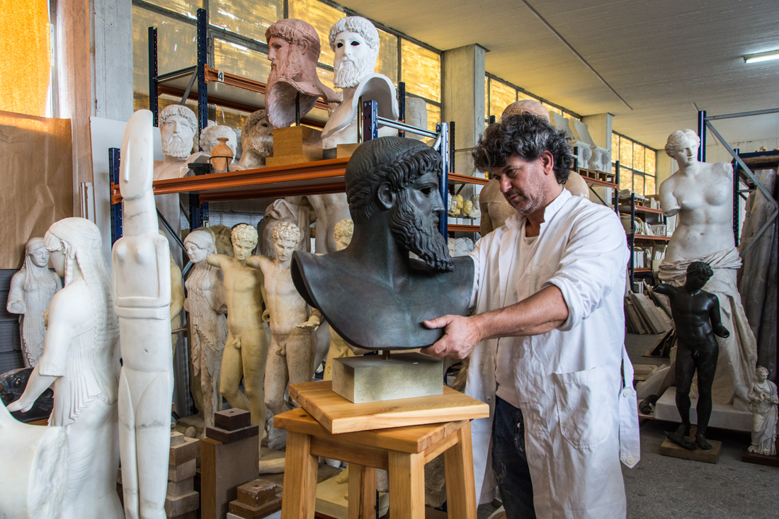 Την φωτογραφία που επιλέχθηκε στις 18 καλύτερες ταξιδιωτικές φωτογραφίες του National Geogpraphic για το 2021: Η συγκεκριμένη είναι μέρος ενός μεγαλύτερου ρεπορτάζ που έκανα τον περασμένο Απρίλιο, λίγες ημέρες πριν ανοίξει επίσημα η τουριστική σεζόν στην Ελλάδα. Για μερικές ημέρες επισκεπτόμουν τα εργαστήρια του ΟΔΑΠ στο Ρέντη, όπου δημιουργούνται πιστά αντίγραφα των σημαντικότερων γλυπτών και έργων τέχνης της αρχαιότητας από όλα τα μουσεία της Ελλάδας. Στη συνέχεια πωλούνται στα ίδια τα μουσεία ως σουβενίρ, αλλά και σε συλλέκτες. Στη συγκεκριμένη φωτογραφία, αποτυπώνεται ο Στέλιος Γαβαλάς, ο υπεύθυνος των εργαστηρίων, μαζί με την προτομή του Ποσειδώνα (ή Δία) του Αρτεμισίου (το αυθεντικό βρίσκεται στο Εθνικό Αρχαιολογικό μουσείο στην Αθήνα) μέσα στην μοντελοθήκη όπου φυλάσσονται όλα τα πρωτότυπα εκμαγεία.