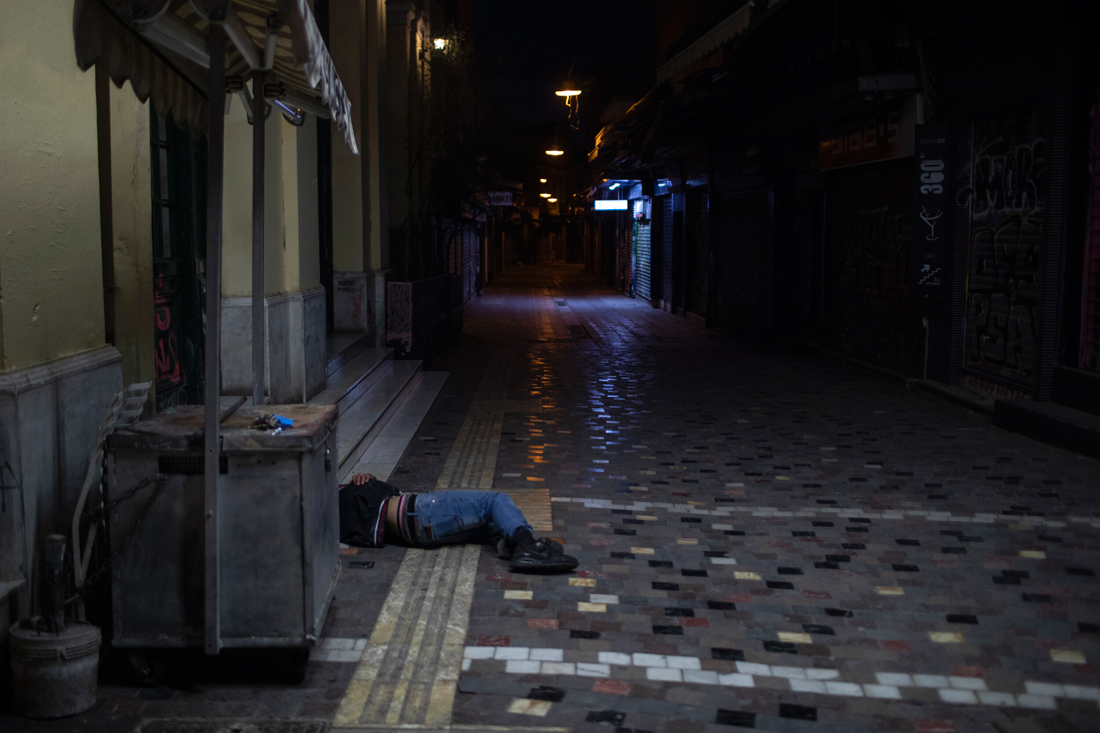Τη φωτογραφία που επιλέχθηκε στη φετινή λίστα με τις καλύτερες του Associated Press: Νομίζω ότι επί της ουσίας είναι μια πολύ απλή εικόνα. Τραβήχτηκε στο πλαίσιο μιας ιστορίας που έκανα για τα κλειστά μαγαζιά στην Αθήνα λόγω κορονοϊού. Οι περισσότερες από αυτές τις εικόνες είναι τραβηγμένες από το σούρουπο και μετά, με ένα φακό και χρησιμοποιούσα και ένα τρίποδο. Δουλεύοντας από ένα σημείο και έπειτα, σχεδόν αποκλειστικά για τα θέματα της πανδημίας, προσπάθησα να δείξω τις αλλαγές που έχει επιφέρει ο κορονοϊός στη ζωή μας, με έναν λίγο διαφορετικό τρόπο, μια άλλη οπτική. Συνειδητά δεν τράβηξα καθόλου νοσοκομεία στην πανδημία. Σκέφτηκα ότι δεν θα ξαναδώ ποτέ την Αθήνα τόσο… άδεια. Μόνο άστεγους έβλεπες έξω. Και μου έκανε θυμάμαι εντύπωση η απόλυτη, απίστευτη σιωπή της πόλης. Ήταν τρομαχτική αυτή η αντίθεση σε σχέση με την γνωστή βαβούρα της Αθήνας. Και ενώ ήμασταν στο δεύτερο lockdown και υπήρχε μια σχετική κίνηση, η Πλάκα ήταν πραγματικά έρημη. Η αντίθεση με την κατεξοχήν τουριστική της φύση ήταν πολύ εμφανής. Μόλις είδα λοιπόν τη συγκεκριμένη εικόνα, είπα: ‘ναι, αυτό μπορεί να γίνει ένα ωραίο κάδρο’.