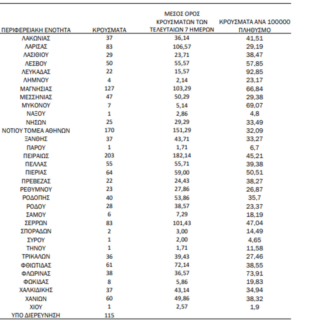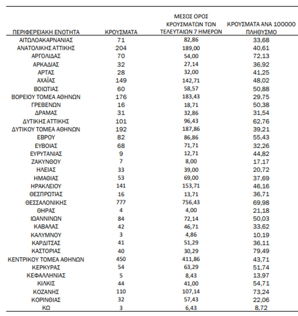 Στο «κόκκινο» παραμένει η Αττική καθώς από τα 4.761 νέα κρούσματα που ανακοίνωσε σήμερα ο ΕΟΔΥ οι 1.521 μολύνσεις εντοπίζονται στο Λεκανοπέδιο.