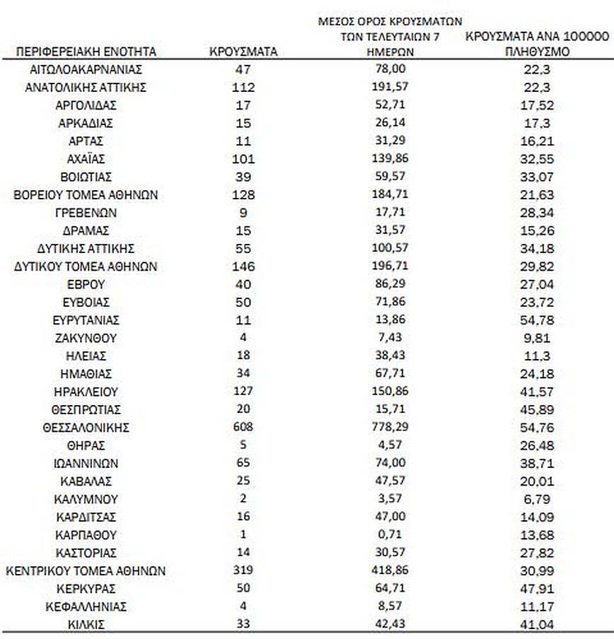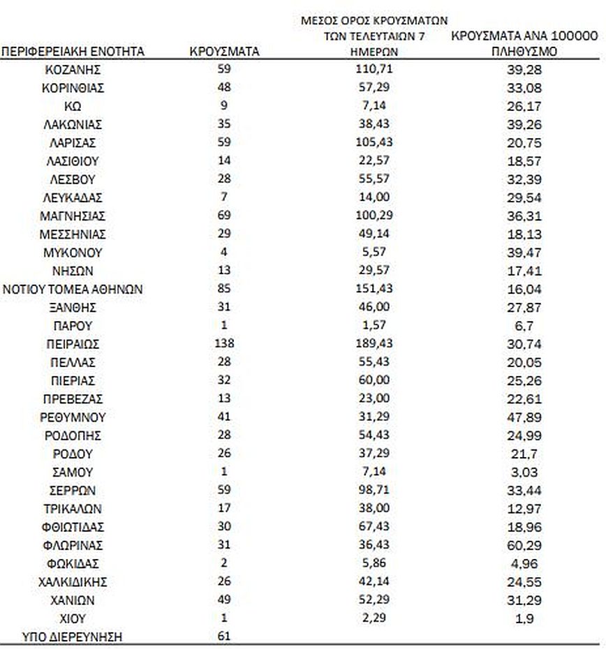 Στο «κόκκινο» παραμένει η Αττική καθώς από τα 3.225 νέα κρούσματα που ανακοίνωσε σήμερα ο ΕΟΔΥ οι 996 μολύνσεις εντοπίζονται στο Λεκανοπέδιο.