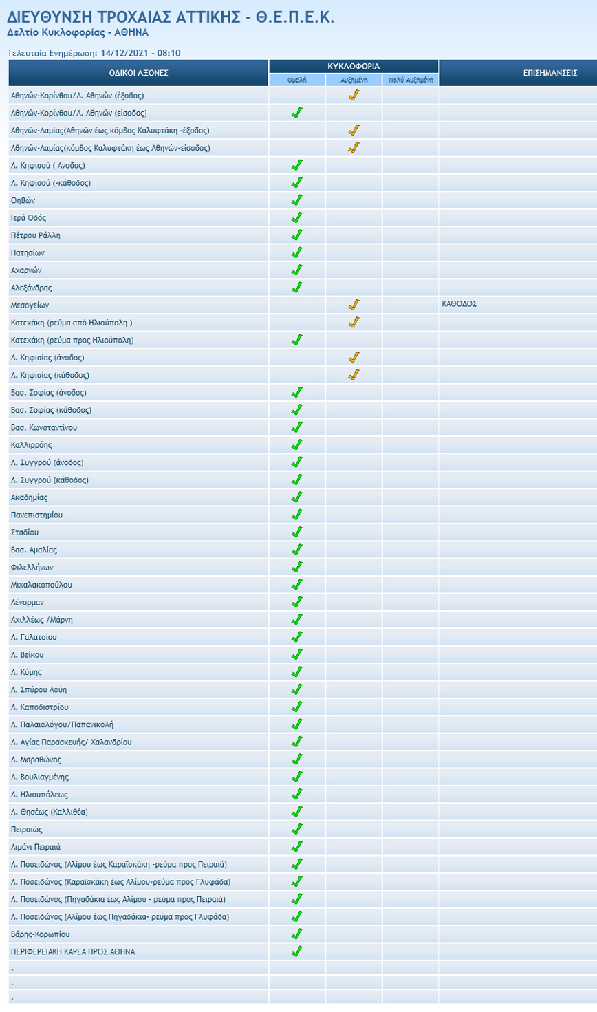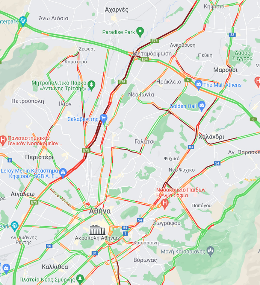 Προβλήματα υπάρχουν ακόμα και στην άνοδο του Κηφισού, στην Κατεχάκη και στα δύο ρεύματα, στη Μεσογείων, στην Κηφισίας και στην Αθηνών – Κορίνθου.