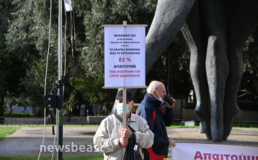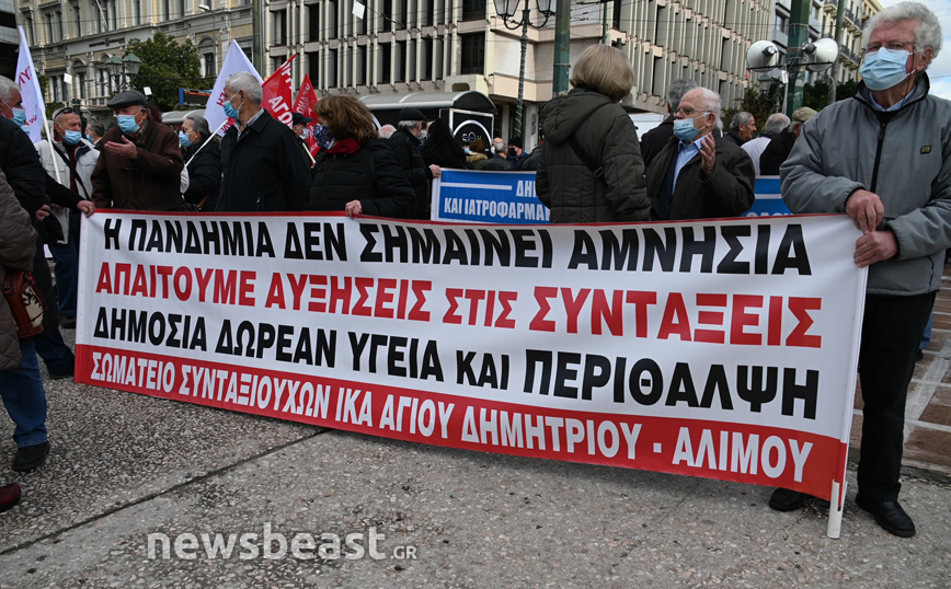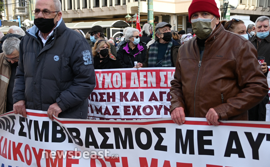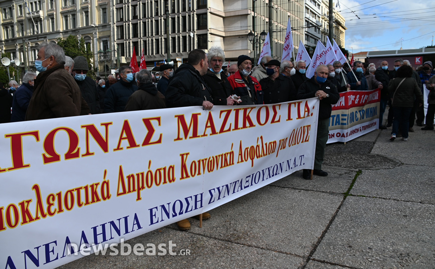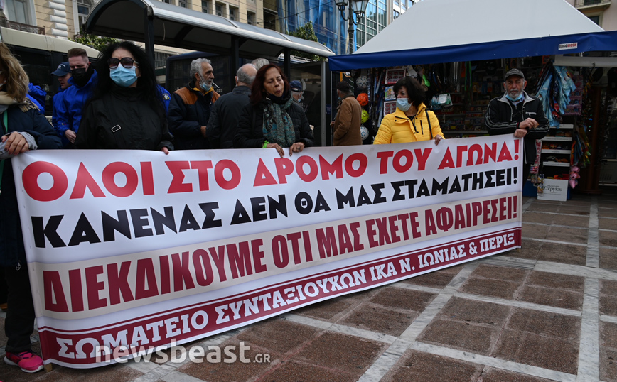 Συγκέντρωση διαμαρτυρίας πραγματοποιούν συνταξιούχοι στην πλατεία Κλαυθμώνος.