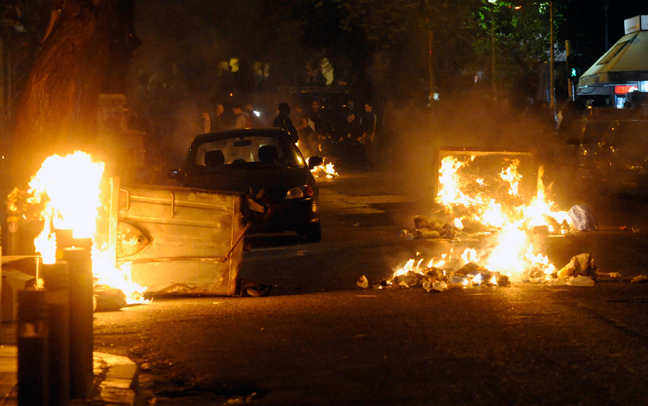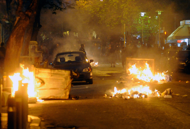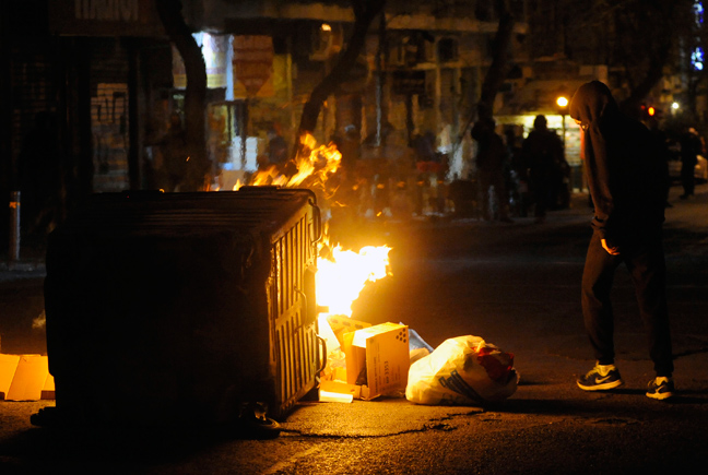 Νέος γύρος επεισοδίων ξέσπασε πριν από μερικά λεπτά στη πλατεία Εξαρχείων και στην οδό Στουρνάρη με μια μικρή ομάδα διαδηλωτών να επιτίθεται στις δυνάμεις των ΜΑΤ με πέτρες, ξύλα, βόμβες μολότοφ και φωτοβολίδες. Οι άνδρες των ΜΑΤ «απάντησαν» με χειροβομβίδες κρότου- λάμψης και περιορισμένη χρήση δακρυγόνων προκειμένου να τους απωθήσουν.