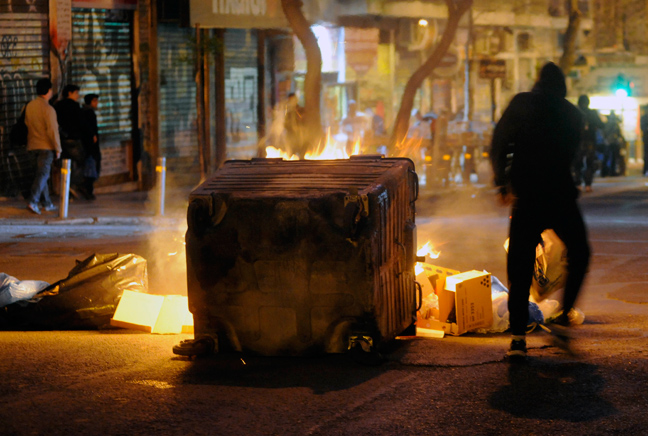 Επί της ουσίας η ένταση στην περιοχή δεν έχει σταματήσει ούτε λεπτό από το απόγευμα όποτε και επέστρεψε στα Εξάρχεια η πορεία ενάντια στα μεταλλεία χρυσού στη Χαλκιδική. Ανά διαστήματα, ωστόσο, παρατηρείται μια αύξηση της έντασης με τους αστυνομικούς να έχουν «περικυκλώσει» την ευρύτερη περιοχή (και κυρίως το ΕΜΠ) αλλά ταυτόχρονα να διατηρούν μια αμυντική στάση.