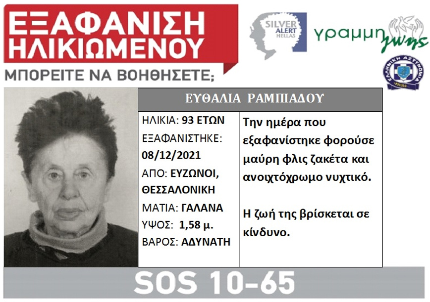 Όποιος γνωρίζει κάτι μπορεί να επικοινωνήσει με την υπηρεσία Silver Alert, όλο το 24ωρο, στην Εθνική Γραμμή SOS 1065.